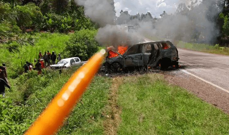 The deputy speaker’s Subaru car was left in wreckage after bursting into flames, which consumed it to ashes. On the other side, the double cabin pick-up veered off to the roadside thicket, with its front partially destroyed.